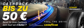 Winter- oder Ganzjahresreifen PKW- oder LLKWReifen von Goodyear (≥ 18 Zoll) erhalten Sie einen Cashback von 50 €.